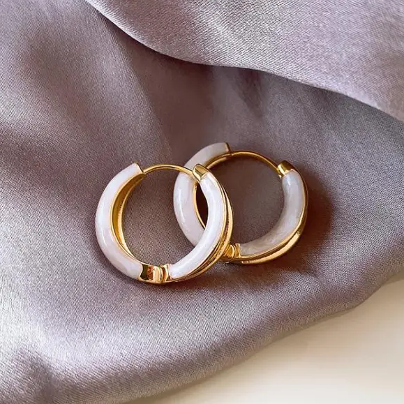 Elegante weiße Emaille-Reifenohrringe